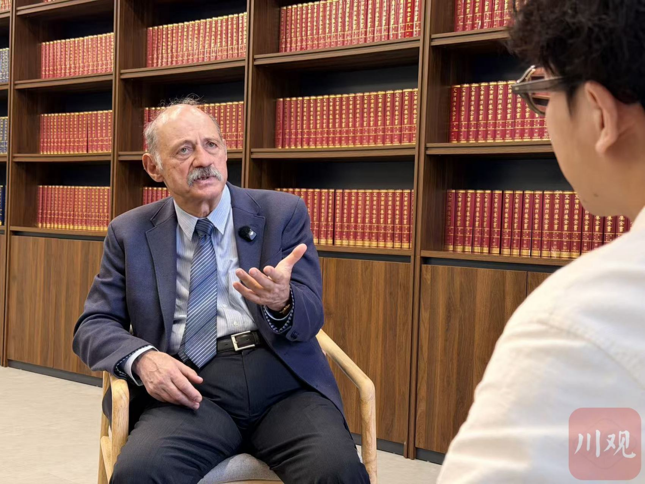 4月12日上午,在四川大学古典学系会议室,布拉塞利斯接受了川观新闻记者专访。“我们不能忽视我们生活在怎样的世界里,对现实视而不见将是非常错误的。”在他看来,古典文明和古典学研究不仅具有重要的文化价值和学术意义,还可能有助于推动解决当今世界的一些现实问题。